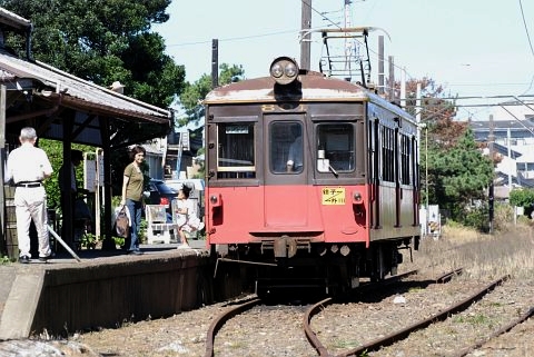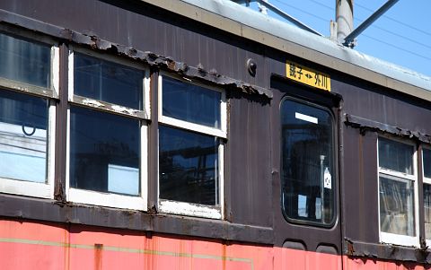 元国鉄のモハ115(鶴見臨港鉄道買収車)で、現在は営業運転からは退いて仲ノ町車庫に置かれている。