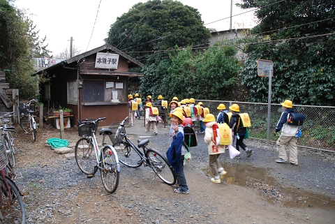 △ ちょうど近くの小学校の下校時間となり、先生に引率されて生徒達がやってきた。 (2006.12)