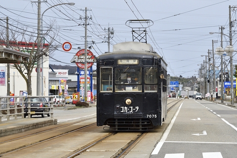 万葉線は加越能鉄道から高岡軌道線と新湊港線を引継いで2004年に運行を開始した第三セクターの鉄道で、高岡駅停留場から六渡寺駅までの高岡軌道線(軌道線)と、六渡寺駅から越ノ潟駅までの新湊港線(鉄道線)で構成されていますが、車両は両線を通して運転されています。 写真はデ7000形電車で、加越能鉄道が導入し、万葉線に引継がれた路面電車車両です。