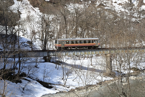 第5姫川橋梁を渡る単行気動車列車です。